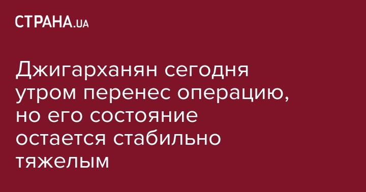Джигарханян сегодня утром перенес операцию, но его состояние остается стабильно тяжелым