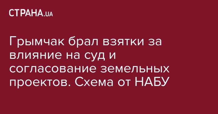 Грымчак брал взятки за влияние на суд и согласование земельных проектов. Схема от НАБУ