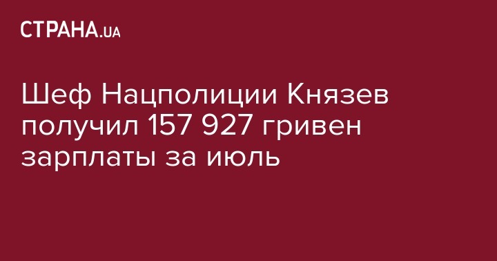 Глава Национальной полиции Украины Сергей Князев в июле получил заработную плату в размере 157 927 гривен.