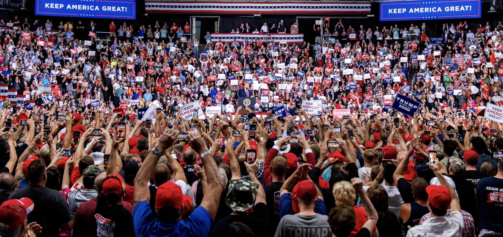 "Великолепные новости! Сегодня вечером мы побили беспрецедентный рекорд по посещаемости, установленный ранее во время (концерта - Ред.) Элтона Джона на стадионе SNHU Arena в Манчестере в Нью-Гэмпшире", - написал президент США в своем Twitter.