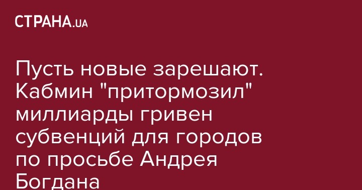Пусть новые зарешают. Кабмин "притормозил" миллиарды гривен субвенций для городов по просьбе Андрея Богдана
