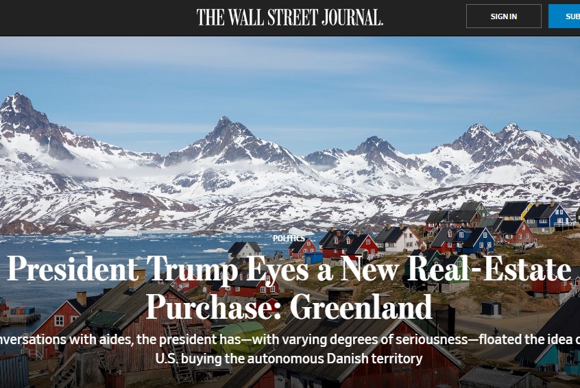 "Президент Трамп присматривается к новой недвижимости: Гренландии" - статью с таким заголовком опубликовал вчера The Wall Street Journal