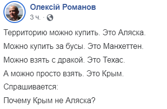 Спрашивается: Почему Крым не Аляска?", - позже написал Романов.