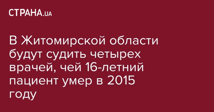В Житомирской области в суд передали дело против трех врачей, которые не смогли вылечить 16-летнего подростка, поступившего в больницу после ДТП в тяжелом состоянии. Об этом сообщает пресс-служба Генпрокуратуры