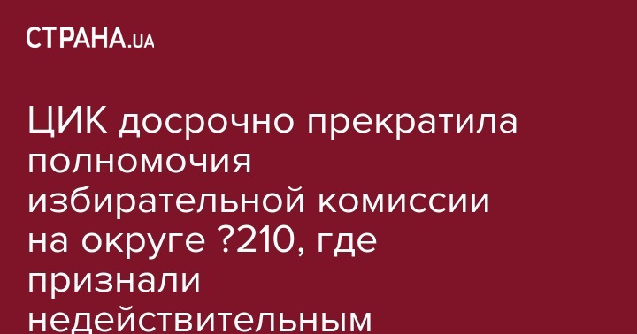 "Следовательно, ЦИК установила грубое нарушение указанной окружной избирательной комиссией Конституции и законов Украины, которое заключается в бездействии по выполнению им определенного Законом Украины "О выборах народных депутатов Украины" и решением Комиссии от 15 августа 2019 обязанности установить итоги голосования в ОВО № 210 с учетом соответствующего судебного решения, и досрочно прекратила полномочия всего ее состава", - сказано в сообщении.