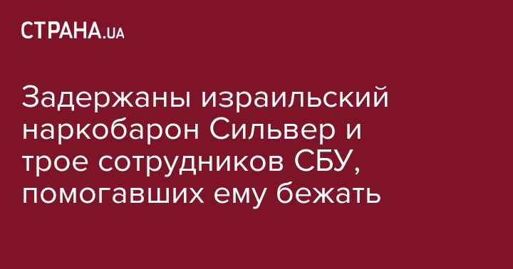 В одной из областей Украины задержали беглого наркобарона гражданина Израиля Амоса Дов Сильвера, а также задержаны трое сотрудников СБУ, которые подозреваются в содействии побегу Сильвера из аэропорта "Борисполь" во время экстрадации. Об этом сообщил пресс-центр спецслужбы.