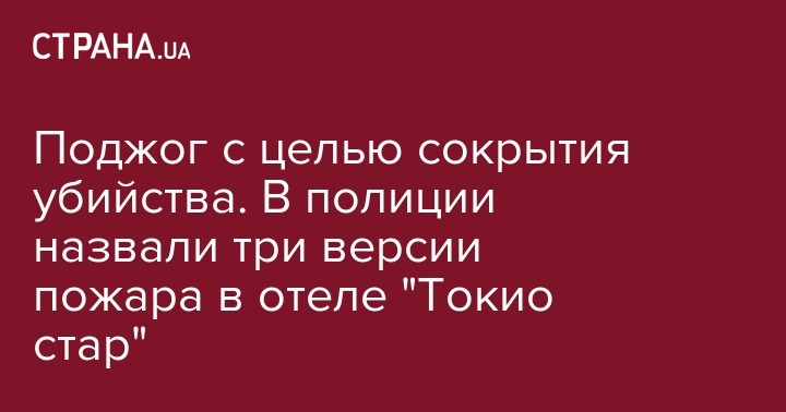 Нацполиция среди основной версии пожара в одесской гостинице "Токио стар" считает совершение поджога с целью сокрытия убийства. Об этом заявил начальник Главного управления Национальной полиции в Одесской области Олег Бех, передает "Интерфакс-Украина".
