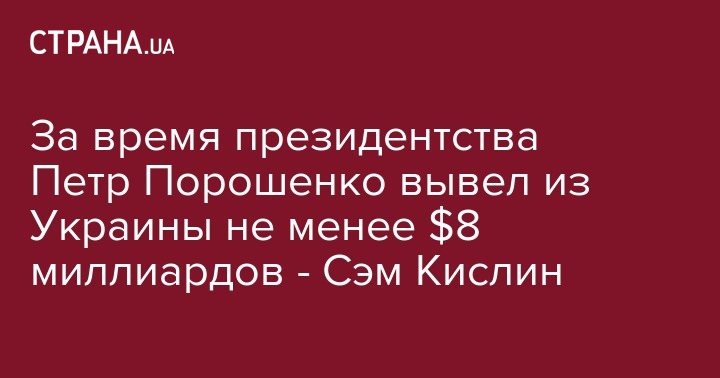 За время президентства Петр Порошенко вывел из Украины не менее $8 миллиардов - Сэм Кислин