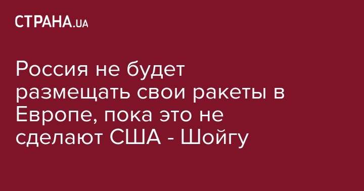 Министр обороны России Сергей Шойгу заявил, что Россия не станет разворачивать новые ракеты в Европе, Азии и Азиатско-Тихоокеанском регионе, пока США не будет размещать свои ракетные системы в Европе и Азии. Как сообщает ТАСС, заявление было сделано в воскресном интервью Шойгу каналу "Россия-24".