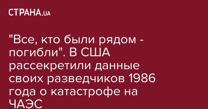 Национальный архив безопасности США обнародовал первый отчет американской разведки о катастрофе на Чернобыльской АЭС 26 апреля 1986 года, датируемый 2 мая. Документ опубликован на сайте архива.