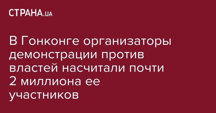 18 августа в Гонконге к акции протеста против властей присоединились примерно 1,7 млн человек. Такие данные сообщает газета South China Morning Post со ссылкой на организаторов протестов.