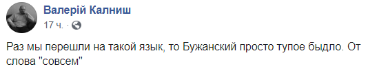"Раз мы перешли на такой язык, то Бужанский просто тупое быдло. От слова "совсем"", - заявил журналист.