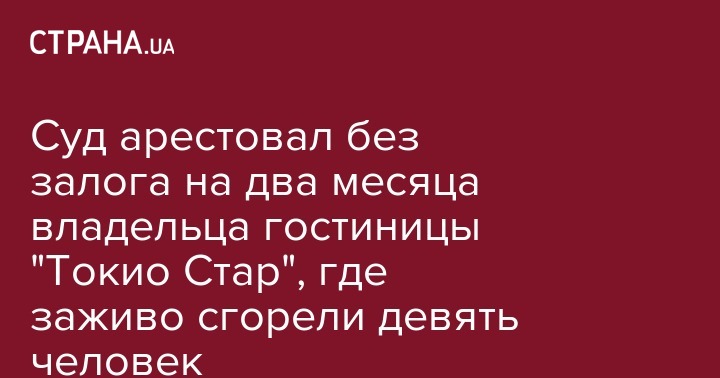 18 августа полицейские задержали владельца гостиницы "Токио Стар" Черного. Он уведомлен о подозрении по ч.2 ст.270 (нарушение установленных законодательством требований пожарной безопасности, повлекшее возникновение пожара, повлекшего гибель людей, имущественный ущерб в особо крупном размере или иные тяжкие последствия) УК Украины.