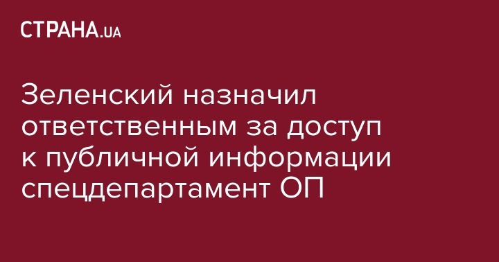 Президент Украины Владимир Зеленский определил ответственным за систематизацию информации и ответы на информационные запросы, адресованные главе государства и Офису президента, Департамент доступа к публичной информации ОП. Об этом свидетельствует информация на сайте президента Украины