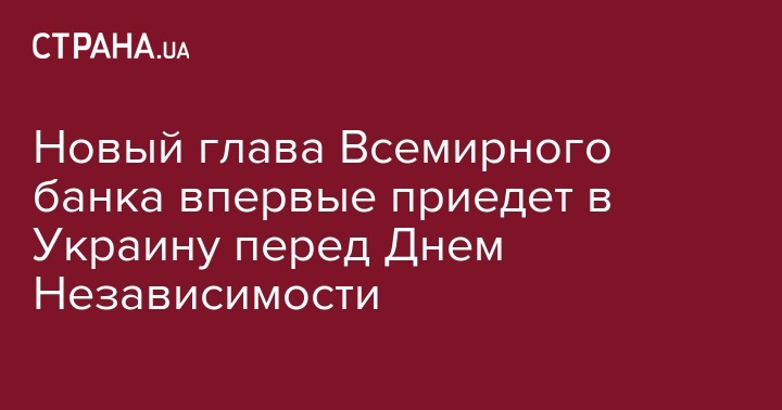 Президент Группы Всемирного банка (ВБ) Девид Малпасс 22 августа впервые прибудет в Украину. Об этом сообщил ВБ на своем сайте во вторник, 20 августа.