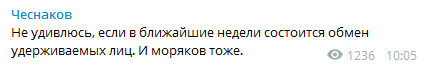 "Не удивлюсь, если в ближайшие недели состоится обмен удерживаемых лиц. И моряков тоже", - написал он.
