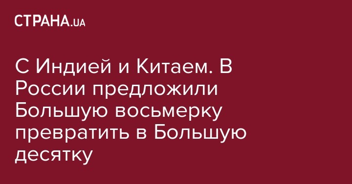 Глава комитета Совета Федерации по международным делам Константин Косачев призвал подумать над созданием международного формата "Большой десятки" с участием Китая и Индии. Также он считает неприемлемым возвращение России к формату "Большой восьмерки" при отсутствии равенства прав и возможностей ее участников.