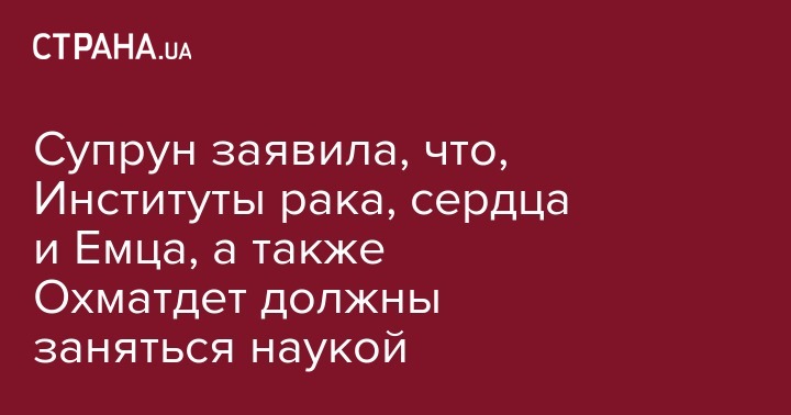 Супрун заявила, что, Институты рака, сердца и Емца, а также Охматдет должны заняться наукой