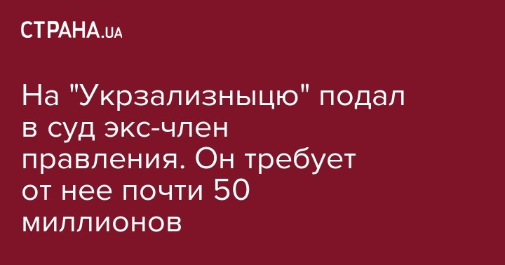 Бывший член правления "Укрзализныци" Александр Бужор, которого уволили с занимаемой должности в июле 2019 года, подал иск в Печерский райсуд Киева против компании о взыскании задолженности по зарплате в размере 48,7 миллионов гривен.
