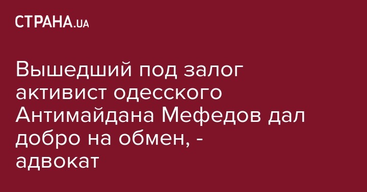 Активист одесского Антимайдана, гражданин России Евгений Мефедов, которому инкриминируется посягательство на территориальную целостность и неприкосновенность Украины (ч.2 ст.110 УК Украины) по мотивам трагических событий в Одессе 2 мая 2014 года, согласился участвовать в процедуре готовящегося обмена пленными между Киевом и Москвой.