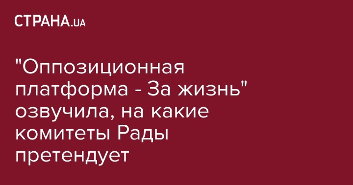 Вторая по численности фракция в новой Раде "Оппозиционная платформа - За жизнь" заявила о том, что претендует в парламенте на ряд ключевых комитетов.