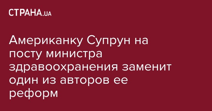 Американку Супрун на посту министра здравоохранения заменит один из авторов ее реформ