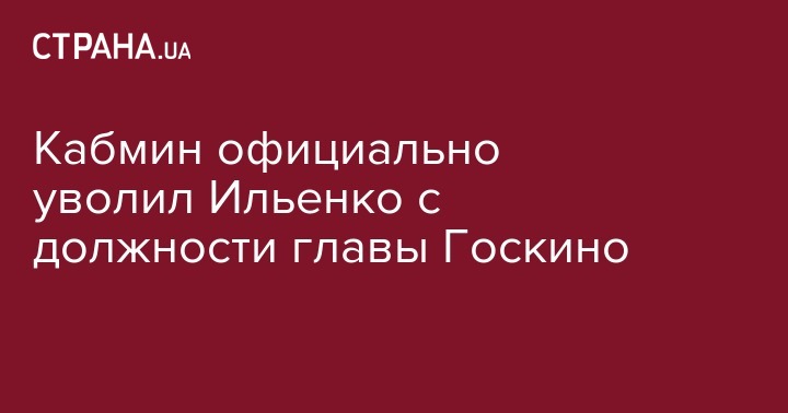 Кабинет Министров Украины 21 августа официально уволил с должности главы Государственного агентства Украины по вопросам кино объявившего об уходе по собственному желанию Филиппа Ильенко. Об этом свидетельствует информация на сайте правительства