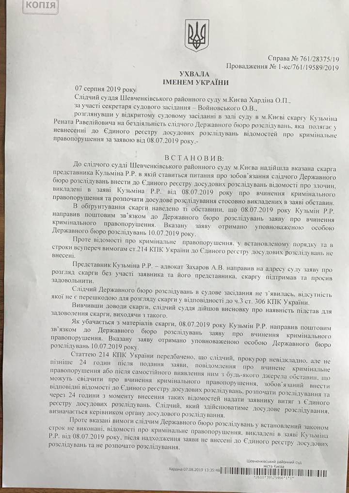 Следственный судья Шевченковского районного суда Киева обязал Государственное бюро возбудить уголовное дело против пресс-секретаря Генеральной прокуратуры Ларисы Сарган из-за незаконного распространения его персональных данных. Об этом сообщил нардеп 9-го созыва Ренат Кузьмин в Facebook.