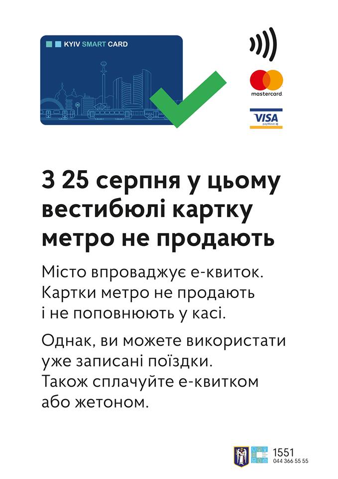Причина таких нововведений - внедрение электронного билета. В кассах на указанных станциях можно будет приобрести и пополнить Kyiv Smart Card. Также можно будет использовать ранее приобретенные поездки, воспользовавшись бесконтактной карточкой метро как обычно.