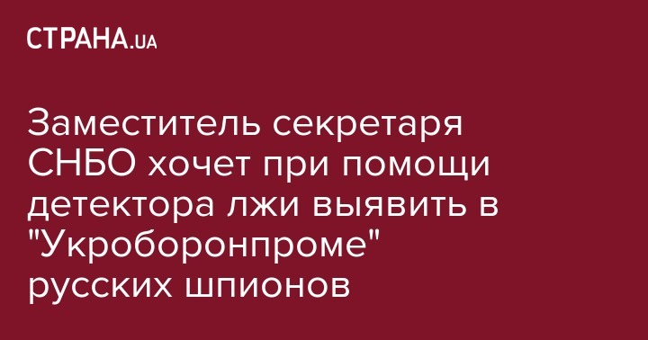 Заместитель секретаря СНБО хочет при помощи детектора лжи выявить в "Укроборонпроме" русских шпионов