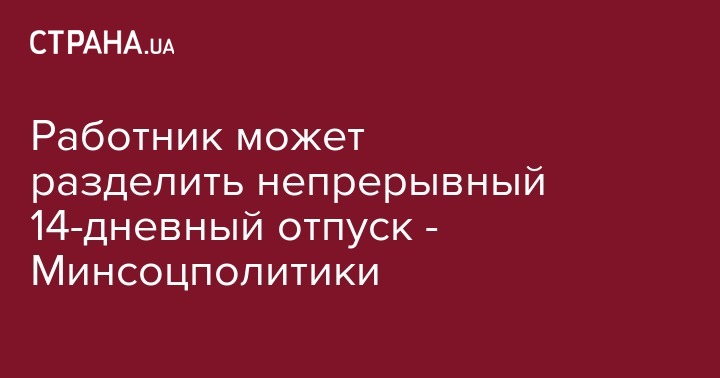 Работник может разделить непрерывный 14-дневный отпуск - Минсоцполитики