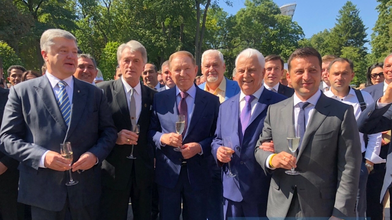 Появилось совместное фото пяти президентов Украины - Леонида Кравчука, Леонида Кучмы, Виктора Ющенко, Петра Порошенко и Владимира Зеленского. В руках они держат бокалы с шампанским.