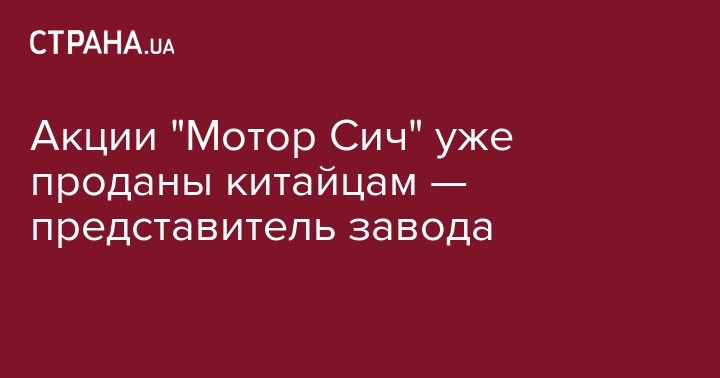 Акции "Мотор Сич" уже проданы китайцам — представитель завода