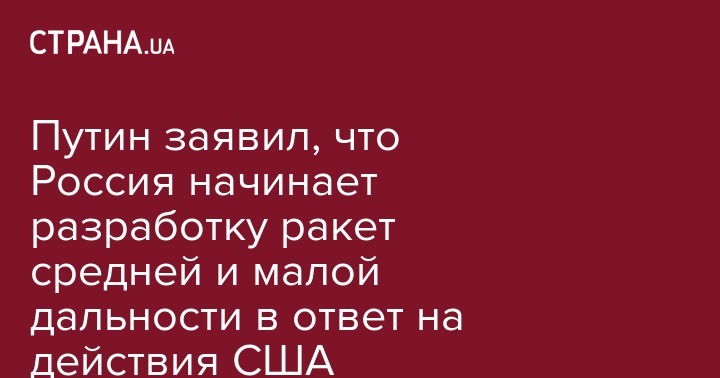 Путин заявил, что Россия начинает разработку ракет средней и малой дальности в ответ на действия США