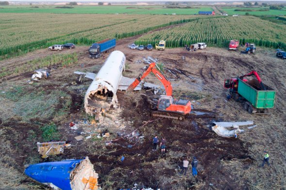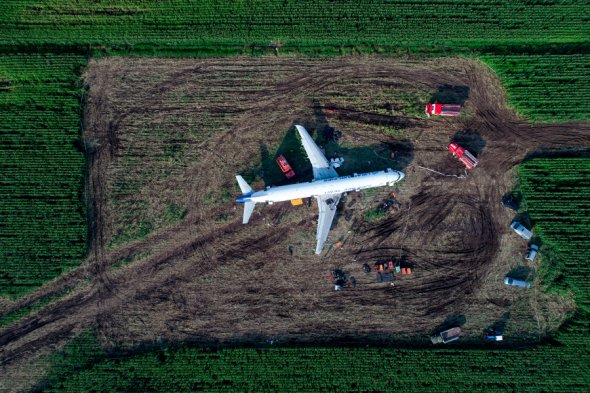 Как в Подмосковье демонтировали лайнер А321, который сел в кукурузном поле. Фото