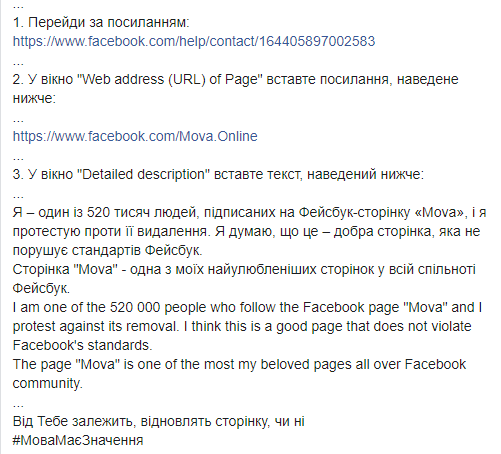 Facebook заблокировал паблик об украинском языке с полумиллионом подписчиков