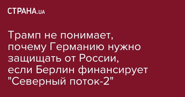 Трамп не понимает, почему Германию нужно защищать от России, если Берлин финансирует "Северный поток-2"
