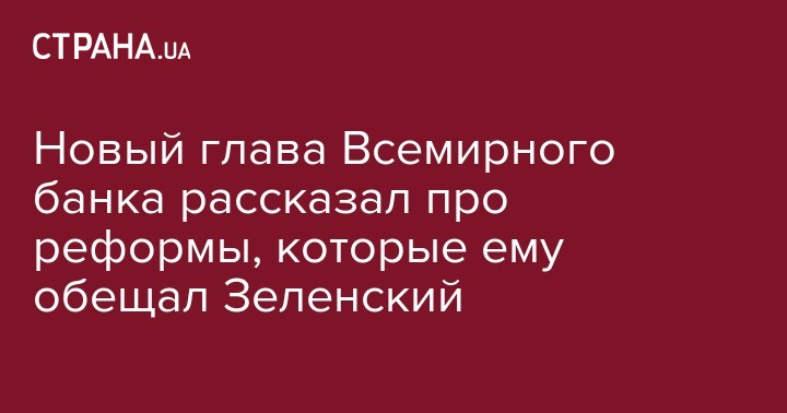 Новый глава Всемирного банка рассказал про реформы, которые ему обещал Зеленский