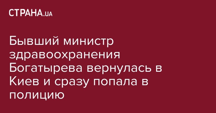 Экс-министр здравоохранения Украины времен экс-президента Виктора Януковича Раиса Богатырева вернулась в страну и сразу же была передана сотрудникам Нацполиции Украины. Об этом сообщает "Интерфакс-Украина" со ссылкой на информированный источник.