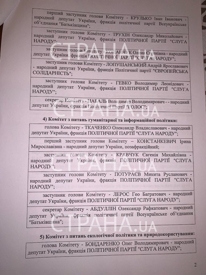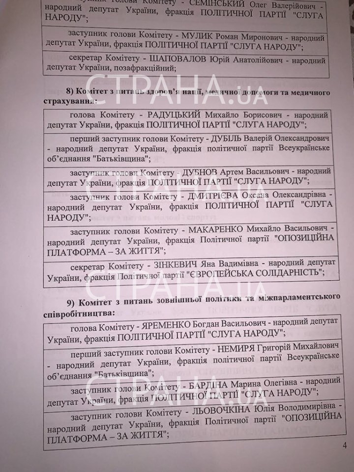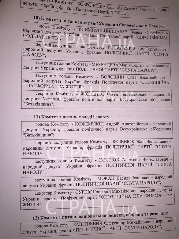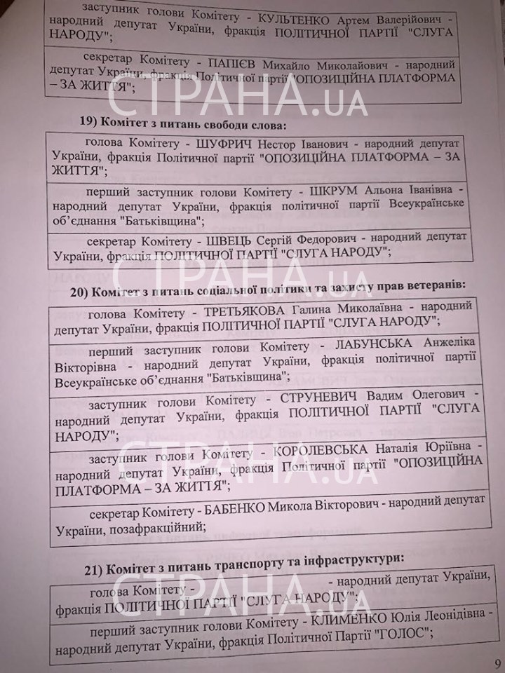 В распоряжении "Страны" оказался полный список руководства всех комитетов Верховной Рады IX созыва, которая начинает свою работу в пятницу, 29 августа.