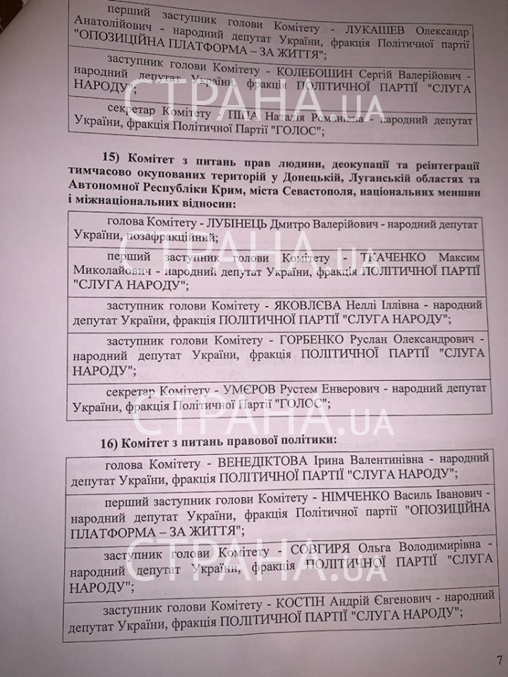15. Дмитрий Лубинец, внефракционный - комитет по вопросам человека, деоккупации и реинтеграции временно оккупированных территорий в Донецкой, Луганской областях и Автономной Республики Крым, города Севастополя, национальных меньшинств и межнациональных отношений.