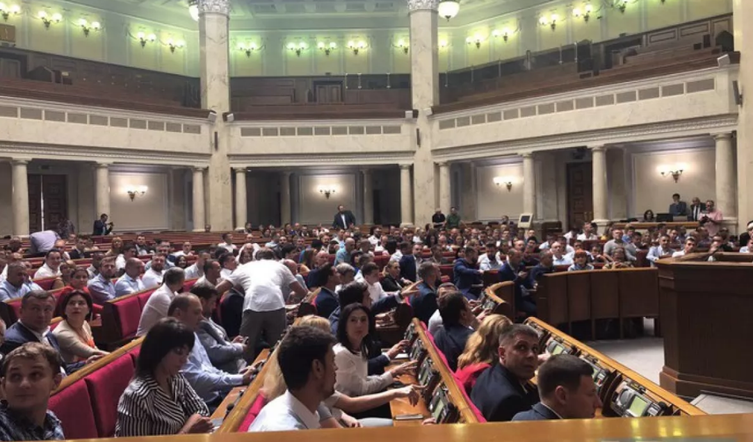 Отмечается, что в сессионный зал пришли почти в полном составе будущие нардепы фракции "Слуга народа", которые голосуют и на табло высвечивается цифра парламентского большинства для результативного принятия решений.