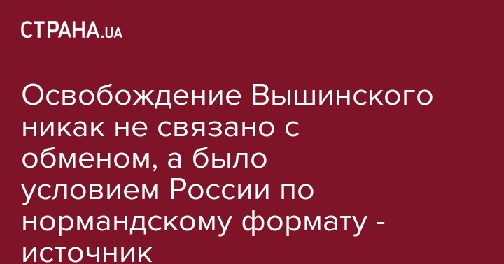 Освобождение Вышинского являлось условием России для начала подготовки встречи в нормандском формате на уровне помощников и никак не связано с обменом заключенными между Украиной и Россией.