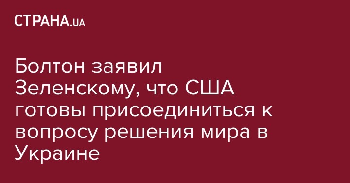 Советник президента США по вопросам национальной безопасности Джон Болтон заявил, что в Вашингтоне готовы присоединиться к процессу по достижению мира в Украине. Это прозвучало на фоне обсуждения вопроса присоединения США к Нормандскому переговорному формату.