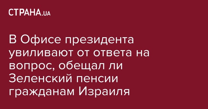 В Офисе президента не стали комментировать информацию о том, что Владимир Зеленский пообещал начать выплаты украинских пенсий гражданам Израиля. Об этом пишут "Украинские Новости".