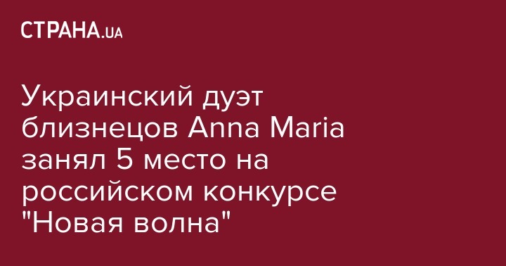 Дуэт сестер-близнецов Анны и Марии Опанасюк из Крыма "Anna Maria" занял пятое место на международном конкурсе "Новая волна", который 24-29 августа проходит в российском Сочи. Об этом свидетельствуют результаты конкурса, опубликованные в его официальном Twitter.