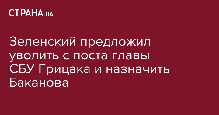 Президент Владимир Зеленский предлагает Верховной Раде уволить Василия Грицака с должности главы Службы безопасности Украины и назначить вместо него Ивана Баканова.