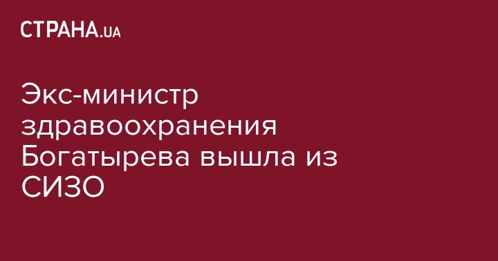 Экс-министр здравоохранения Раиса Богатырева в отношении которой суд избрал меру пресечения в виде содержания под стражей с альтернативой залога в 6 миллионов гривен, вышла на свободу после внесения необходимой денежной суммы народным депутатом Вадимом Новинским. Об этом сообщает "Интерфакс-Украина"