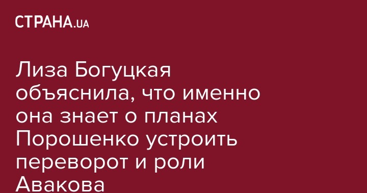 Лиза Богуцкая объяснила, что именно она знает о планах Порошенко устроить переворот и роли Авакова
