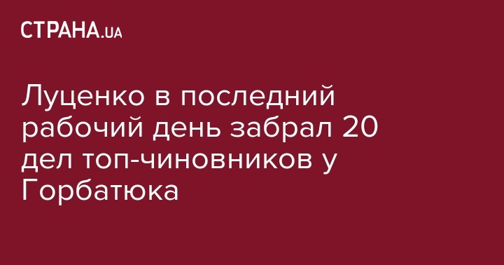 Бывший генпрокурор Юрий Луценко в свой последний день на работе, 29 августа, забрал в управление спецрасследований ГПУ 20 дел по коррупционным преступлениям бывших высокопоставленных чиновников.